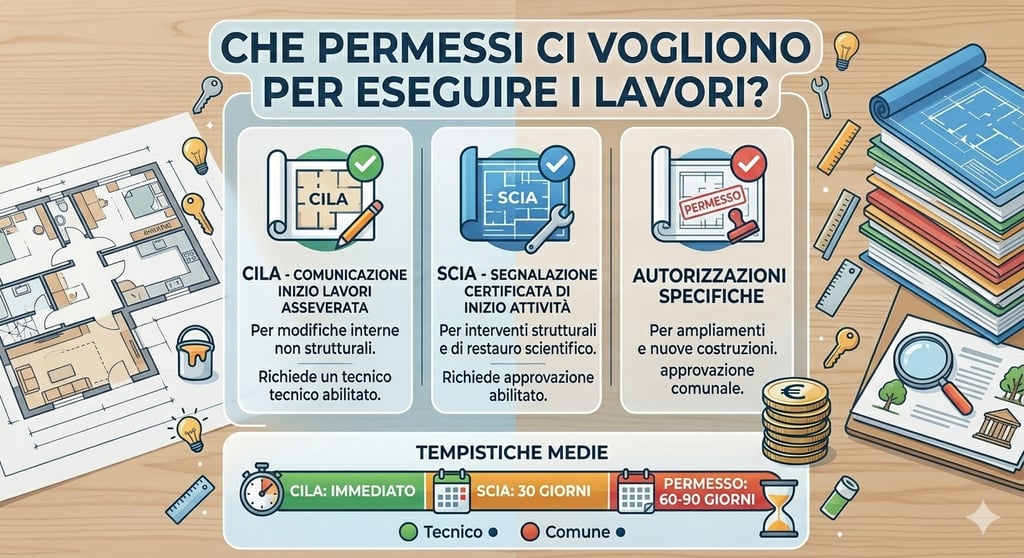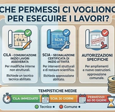 Tipo di Lavoro Permesso Necessario Tempistiche Ristrutturazione Leggera CILA 48 ore Ristrutturazione Importante SCIA 30 giorni Nuova Costruzione Permesso di Costruire 90 giorni
